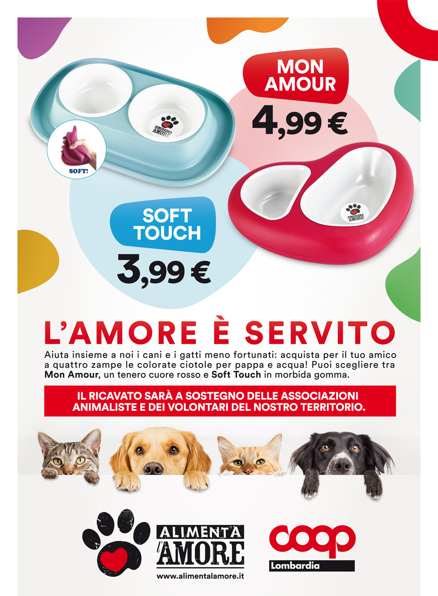 Dal 15 ottobre saranno disponibili in tutti i negozi Coop Lombardia le colorate ciotole di Alimenta l’Amore.